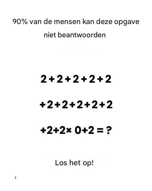“90% van de mensen kan deze simpele rekensom niet oplossen.”