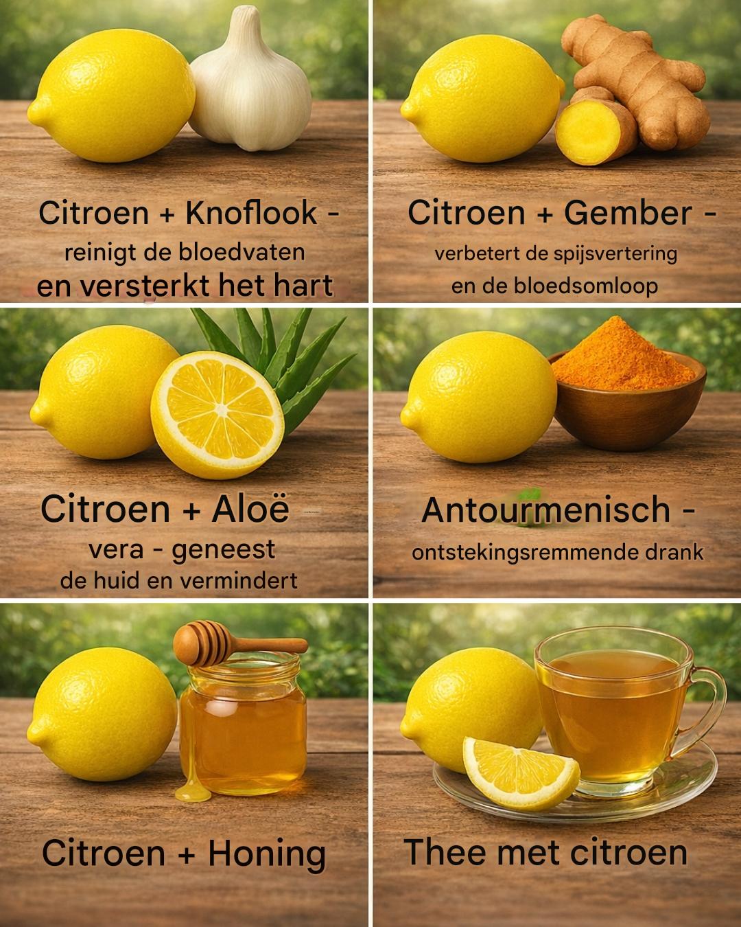 Citroenen zijn rijk aanĀ Ā flavonoĆÆdenĀ Ā enĀ Ā vitamine CĀ , die ontstekingen en oxidatieve stress tegengaan en zo de hartgezondheid en het immuunsysteem ondersteunen.