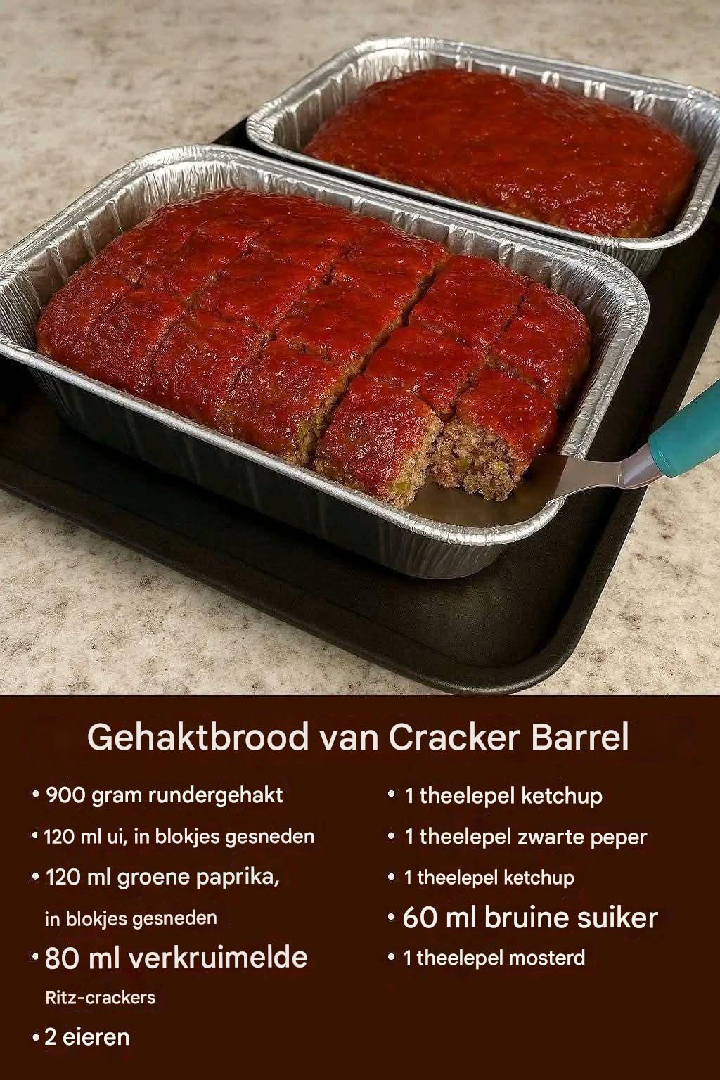 Als het op comfort food aankomt, zijn er maar weinig gerechten zo nostalgisch als de Cracker Barrel Meatloaf . Sappig, voedzaam en boordevol authentieke smaken: dit recept in Zuidelijke stijl is al jaren een favoriet bij gezinnen. Met mals rundergehakt, boterachtige Ritz-crackers, hartige groenten en een zoet-pittige glazuur, smaakt elke hap als een warme omhelzing. Of je het nu in het restaurant hebt gegeten of diezelfde magie thuis wilt namaken, dit recept biedt de perfecte balans tussen rijke smaak en troostende eenvoud.