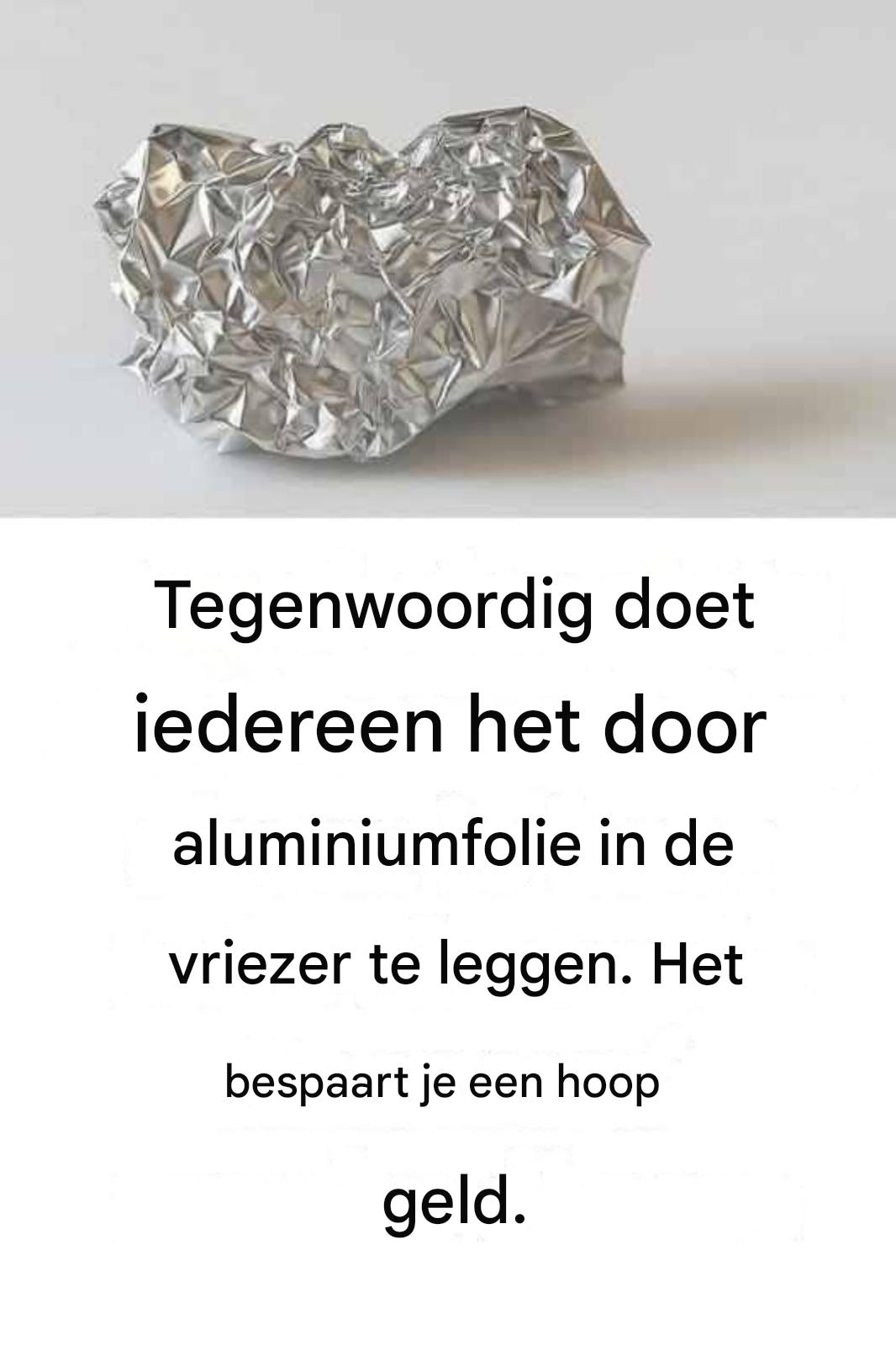 . Aluminiumfolie is een uitstekende warmte-isolator. Door het in de vriezer te plaatsen, blijft de temperatuur stabieler, waardoor de compressor minder belast wordt en energie bespaard wordt.