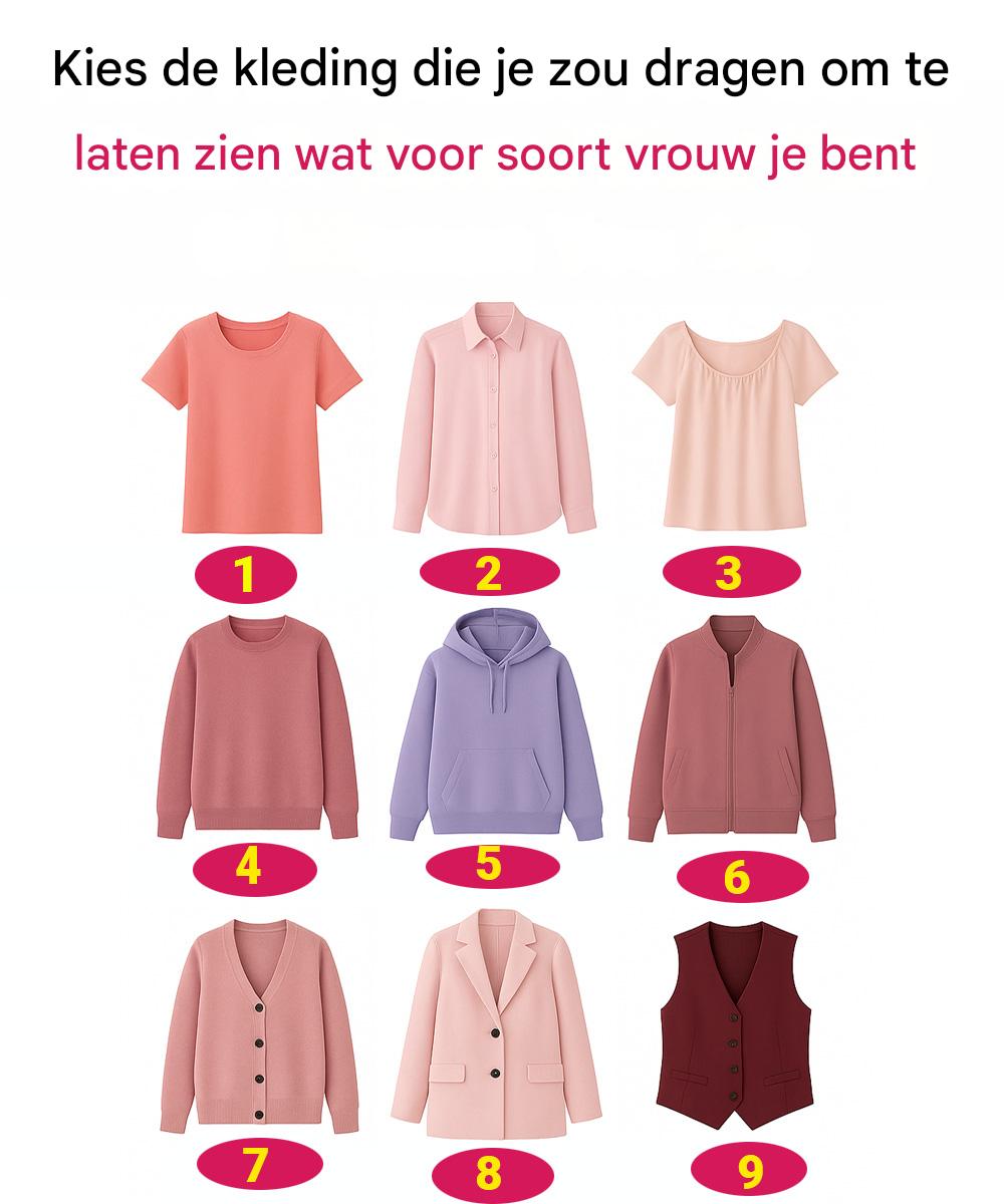 Bekijk dus de onderstaande outfits en kies degene die je waarschijnlijk het meest zou dragen. Jouw keuze zou zomaar eens kunnen onthullen wat voor vrouw je werkelijk bent.