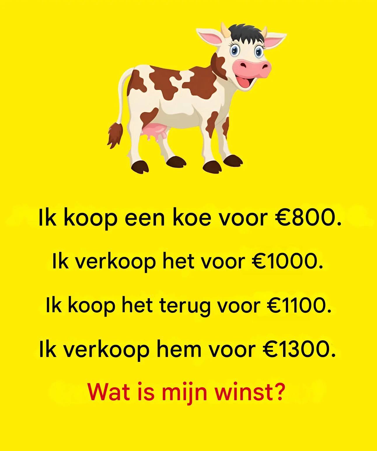 Je hebt dit probleem vast wel eens gezien: een koe wordt gekocht en verkocht, er worden geldbedragen over en weer betaald… en dan komt de lastige vraag: “Hoeveel heeft ze opgebracht?” Je denkt het te weten, maar als je het natelt, raak je de draad kwijt. Geen zorgen, het ligt niet aan je wiskundige vaardigheden: je hersenen raken gewoon afgeleid door de grote getallen. Het goede nieuws? Met een heel simpele methode wordt het antwoord glashelder.