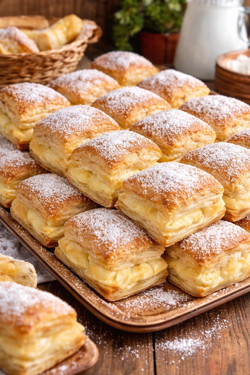 Deze klassieke Spaanse lekkernij combineert goudbruin bladerdeeg met een zijdezachte custard. Perfect als dessert, tussendoortje of om indruk te maken op een brunch. Met een flinke laag poedersuiker bovenop zijn deze Miguelitos onweerstaanbaar!