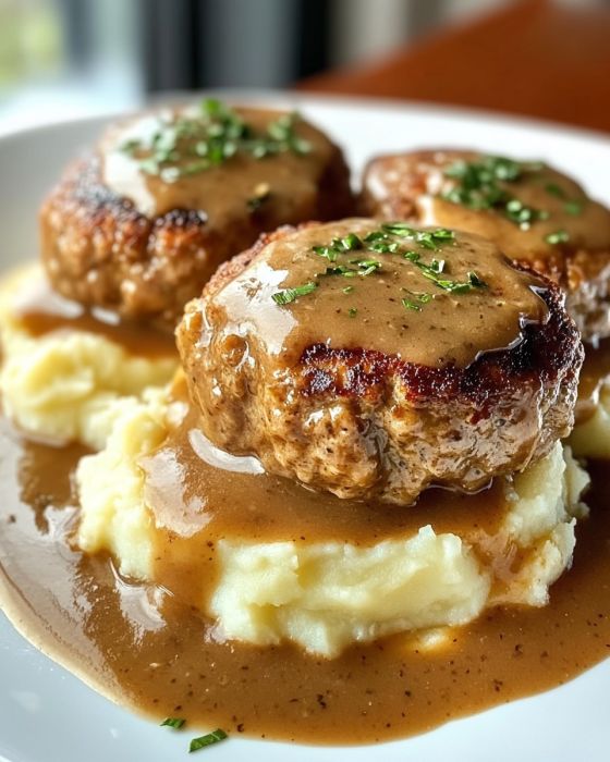 Salisbury steak uit de slowcooker met knoflook-kruidensaus