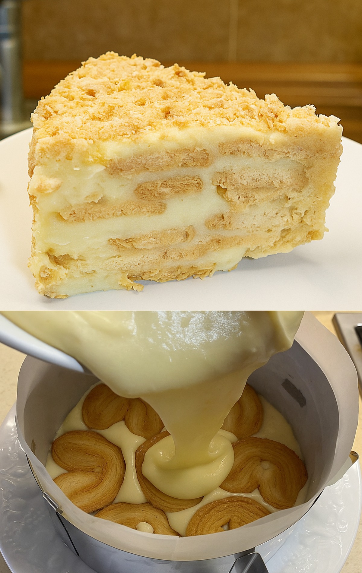 Deze snelle en makkelijke Napoleoncake met palmierkoekjes is een vereenvoudigde versie van dit iconische dessert. Dankzij de palmierkoekjes en een romige banketbakkersroom is deze Napoleoncake, die je niet hoeft te bakken, ideaal voor een heerlijk dessert zonder uren in de keuken te hoeven staan. Licht, romig en knapperig tegelijk, hij is in 20 minuten klaar en smaakt het lekkerst gekoeld na het afkoelen in de koelkast.