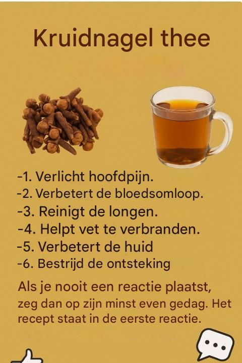🫖 Kruidnagelthee: voordelen, bereiding en voorzorgsmaatregelen Kruidnagelthee is een natuurlijke infusie met talloze gezondheidsvoordelen. Kruidnagel wordt al eeuwenlang gebruikt in de traditionele geneeskunde, met name in Azië en Afrika, en staat bekend om zijn antiseptische, ontstekingsremmende en stimulerende eigenschappen. 🌿 Voordelen van kruidnagelthee Verlicht hoofdpijn. Dankzij de pijnstillende werking kan kruidnagel pijn verlichten, waaronder migraine en nerveuze … Read more
