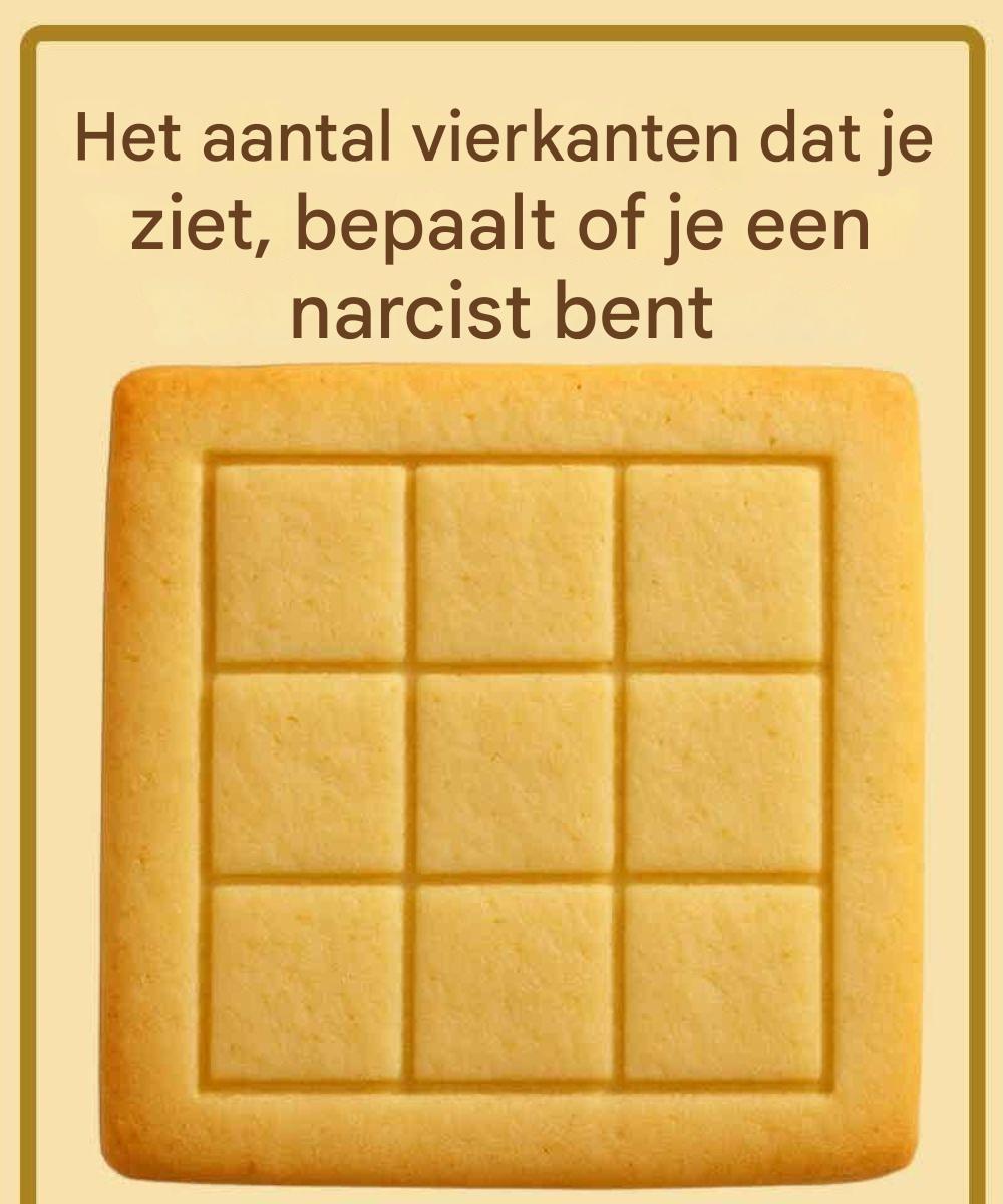 Het aantal vierkanten dat je ziet, bepaalt of je een narcist bent Op het eerste gezicht lijkt deze simpele, koekachtige afbeelding onschuldig – gewoon een raster in deeg. Maar de vraag erboven, “Het aantal vierkantjes dat je ziet, bepaalt of je een narcist bent”, doet iedereen even stilstaan. Het is een leuke psychologische illusie die … Read more