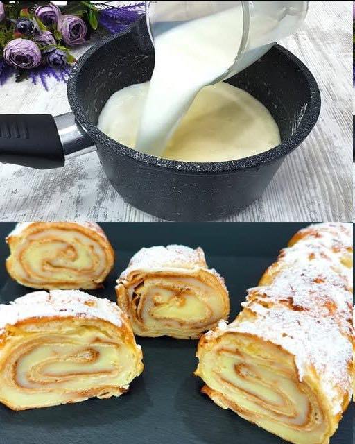 Deze vla-rol is een heerlijk zacht dessert met een luchtige cake en een romige,