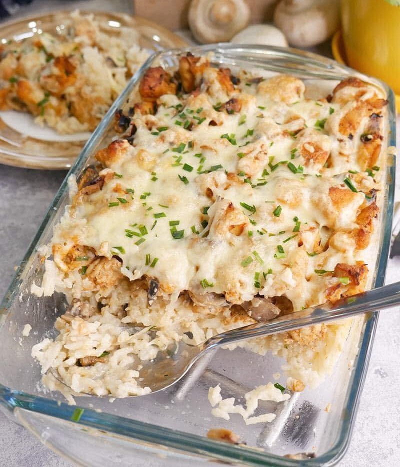 Rijstschotel met kip en champignons – een klassieke zelfgemaakte hit die iedereen zal bekoren🍚🍗