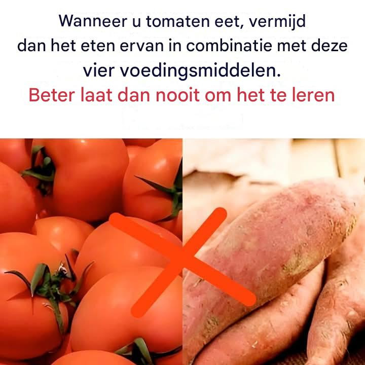 Tomaten en zoete aardappelen: een combinatie die de spijsvertering kan verstoren.