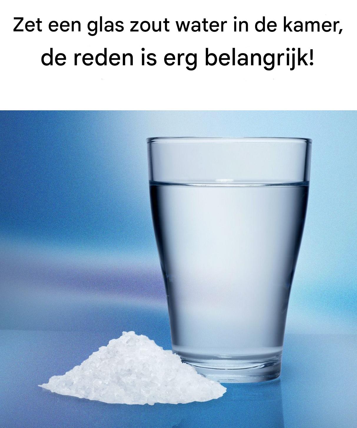 Waarschuwing: Het is cruciaal om het zout niet in het water op te lossen, omdat dit ervoor zou zorgen dat de techniek niet goed werkt.