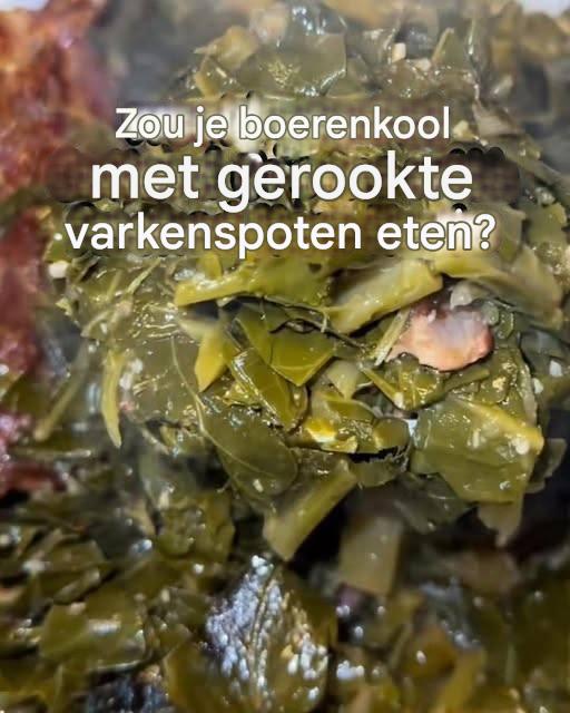 Collard greens met gerookte hamschenkels is een echt Zuidelijk comfortgerecht – langzaam gestoofd tot ze mals zijn en doordrenkt met een rijke, rokerige smaak. De hamschenkels zorgen voor een diepe, hartige bouillon, terwijl de boerenkool perfect zacht wordt zonder zijn stevige textuur te verliezen. Dit gerecht is een vaste waarde bij familiediners, feestdagen en zondagse maaltijden, geserveerd met maïsbrood, rijst of bonen.